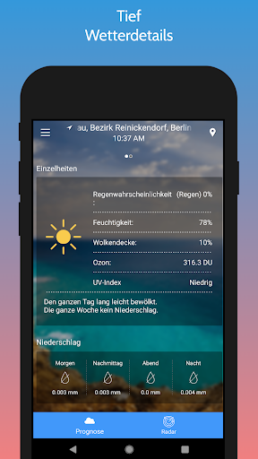 Der Wetterbericht ist eine der besten kostenlosen Wetter-Apps mit allen Funktionen: lokales Wetter, Wetterkarte (windyty weather map service) und Wetter-Widgets.