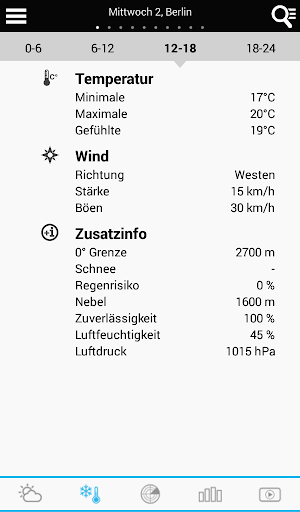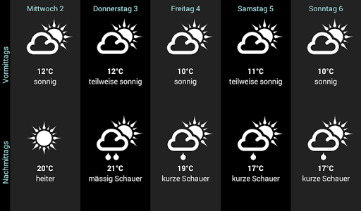 - Wettervorhersagen für Nacht / Morgen / Nachmittag / Abend