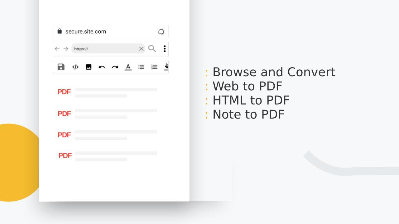 The advanced rendering of modern HTML pages helps in converting Website to PDF. You can browse the URL in the app which helps you to convert pages which needs authentication. This helps you for saving or share the content without needs to share your password.
