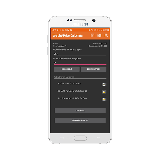 Viele Leute gehen auf den Markt und haben Schwierigkeiten, diese Art der Berechnung schnell durchzuführen. Der Ladenbesitzer vor Ort nutzt diese Schwäche aus. Sie können leicht von lokalen Ladenbesitzern betrogen werden. Diese App gibt Ihnen den korrekten Preis für das angegebene Gewicht und das korrekte Gewicht für den angegebenen Preis, je nach Kilopreis für alle Artikel. Jetzt Diese App ist in Englisch, Französisch, Russisch, Deutsch, Spanisch, Italienisch, Hindi und Urdu verfügbar.