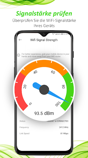 ☑ WiFi Signal Strength Analyzer (WiFi-Signalstärkeanalyse): Ermöglicht die Messung und Analyse der WiFi-Signalstärke Ihres Geräts, sodass Sie leicht den Grund für Ihre schlechte Internetverbindung erkennen können.