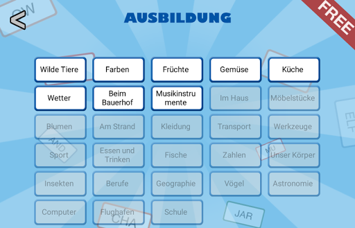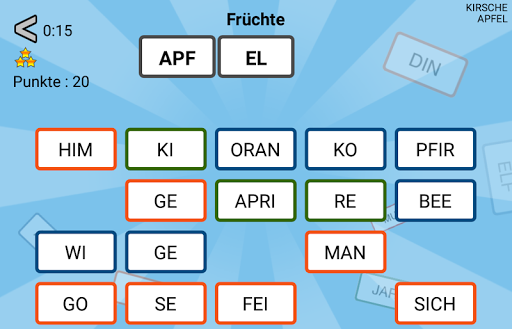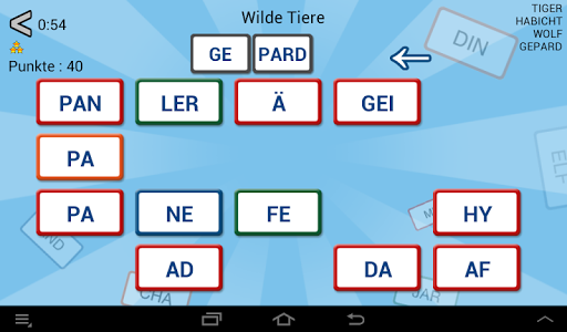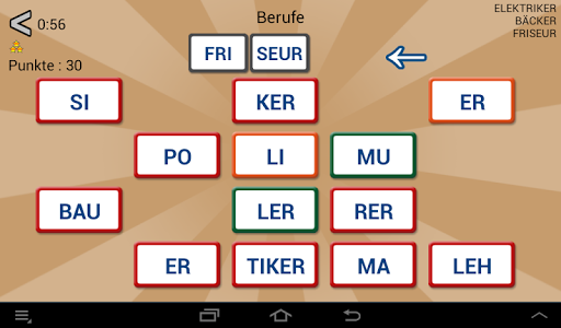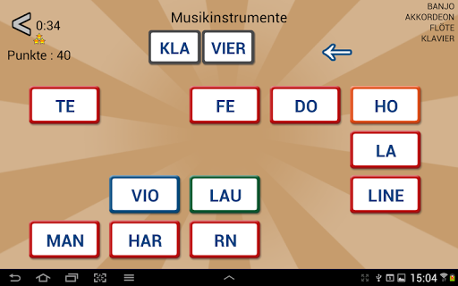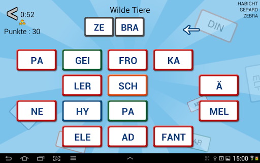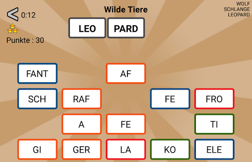 - Möglichkeit, mit Deutsch, Englisch, Französisch und Spanischwörtern zu spielen