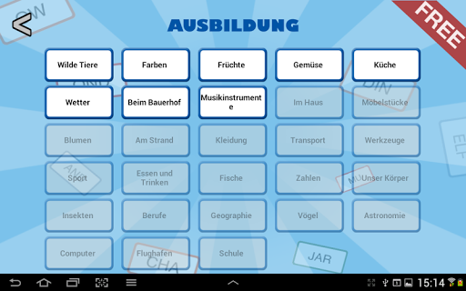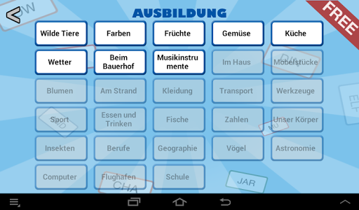 - Mit der vollständigue Version, mehr als 600 verschiedene Wörter, um unter 28 Kategorien finden Sie unter: Tiere, Bäume, Gemüse, Kleidung, Möbel, Musikinstrumente ...