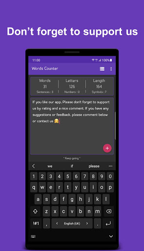 • Autoren / Autoren: Ob Sie ein Schriftsteller von Geschichten und Romanen oder einem Schriftsteller von Medienberichten sind. Unsere Anwendung hilft Ihnen, zu bestimmen, wie viele Wörter oder die Länge der Nachricht, die Sie geschrieben haben.