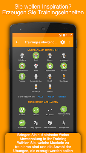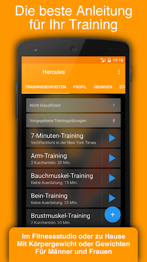 Sie können sie verwenden, einige vordefinierte Workouts wie die 8 Minuten Bauchtraining oder andere Trainingseinheiten, die Sie im Internet finden, durchzuführen. Wenn Sie ein Mann sind, werden Sie in der Lage sein, schnell Muskeln aufzubauen und Ihre Fortschritte über das Benutzerprofil und Messungs-Tracker verfolgen. Sie können Ihre Arme, Bauch, Bizeps, Brust und andere Muskeln Ihrer Wahl trainieren! Erzeugen Sie Trainingseinheiten auf Ihre Bedürfnisse abgestimmt, es ist schnell und einfach.