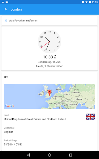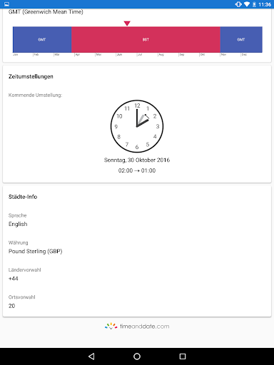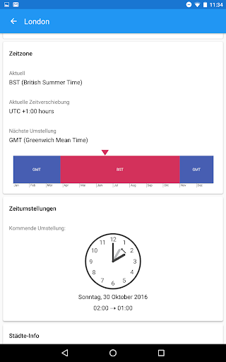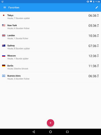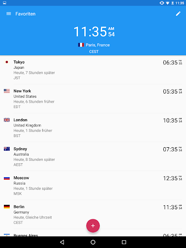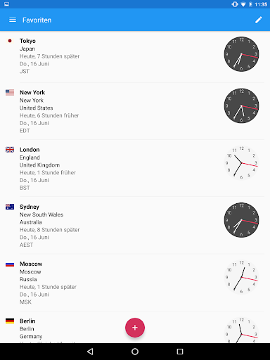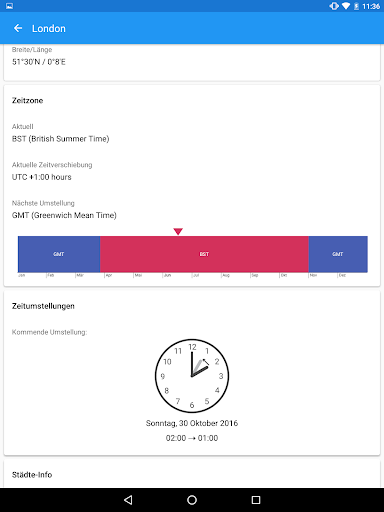 Ortszeiten in 5000 Städten in allen Zeitzonen der Welt. Alle Informationen werden ständig geprüft und aktualisiert. Die App bietet auch eine Alarmfunktion und Widgets.