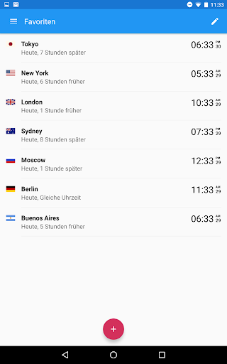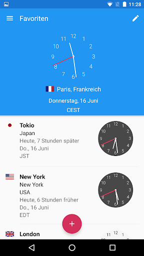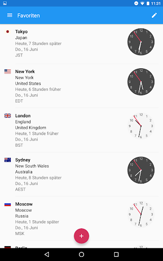 - Erstellen Sie Ihre persönliche Weltzeituhr, indem Sie Städte zu Ihren Favoriten hinzufügen.