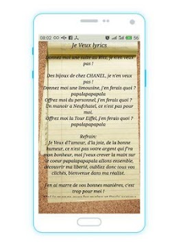 ZAZ Songs and Lyrics is one form of suitable applications in your phone. Surely this application is easy to use and free you downloaded. Latest song: Je Veux Lyrics On ira Lyrics