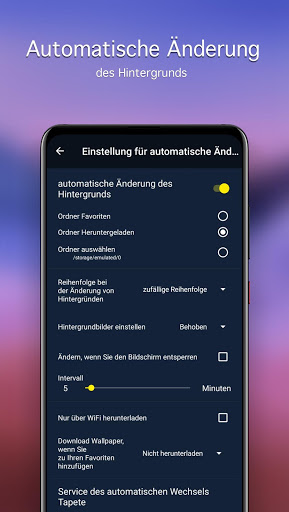 • Automatische Hintergrundänderung mit dem angegebenen Intervall (Live-Wallpaper)