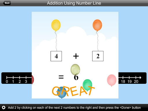 Click on the “Back” button to close “Addition Using Number Line” or return to the previous page.