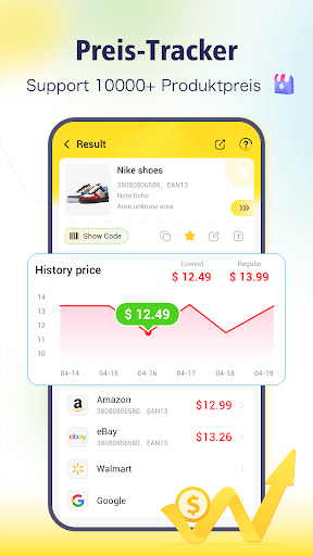Mit diesem leistungsstarken Produktscanner können Sie Produktdetails per Ein-Klick-Scan abrufen, Preise auf einen Blick erfassen und verschiedene Preise bequem vergleichen. Sie können damit auch Aktionen und Gutscheincodes 💰 scannen, um Rabatte zu erhalten. Laden Sie es herunter und machen Sie Ihr Einkaufserlebnis noch angenehmer! 👍