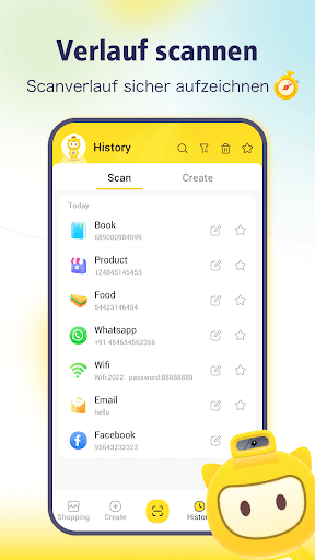 Eine Aufzeichnung aller gescannten und erstellten QR-Codes wird dauerhaft gespeichert, und die Verlaufsliste erleichtert das Verwalten und Löschen des Verlaufs besuchter Orte und QR-Code-Links.