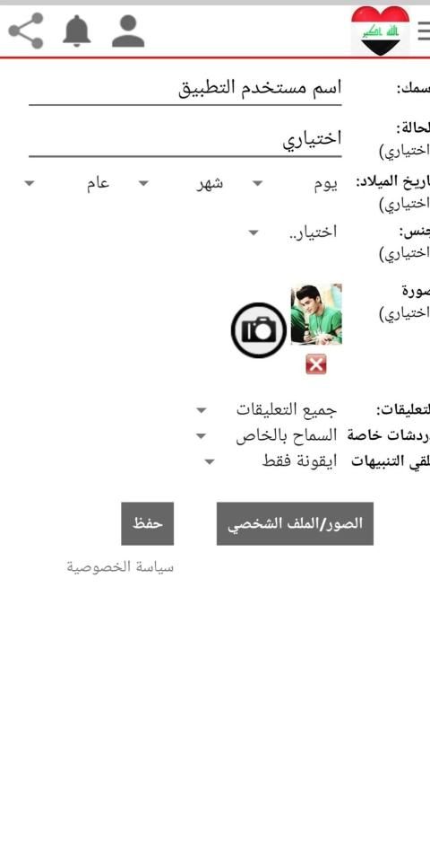 Chat dating between the sons of Iraq to get to know new friends, respectful note that the application includes both sexes girls and youth and the application is subject to the privacy policy of Google Play the application does not require a beautiful or a phone number only a picture and a name and you will enjoy the chat
