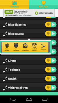 Con la App de Sonidos para Whatsapp podrás también a través del botón compartir enviar los sonidos por correo electrónico. El resto de opciones son para establecer cualquiera de los sonidos como Tono de llamada, como Tono de contacto, Tono de notificación, o establer el sonido como Tono para alguna de tus alarmas.