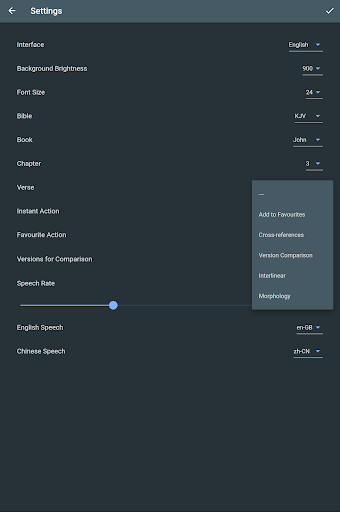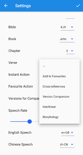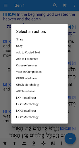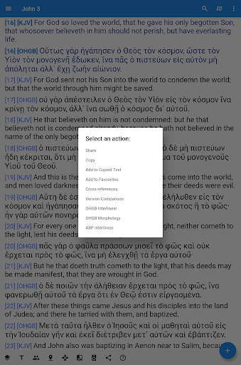 [Interlinear ist in beiden Versionen verfügbar. Premium "Unique Bible Plus" verfügt über einen zusätzlichen Knopf, der sich in der unteren Bar befindet, um einen sofortigen Zugang von Interlinear zu erhalten.]