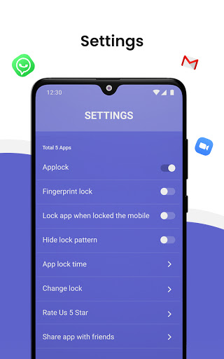 können Sie Ihre privaten Apps mithilfe eines Musters oder PIN-Codes sperren. Dies schützt Ihre Apps vor unbefugtem Zugriff anderer Benutzer, wenn Ihr Telefon unbeaufsichtigt, ausgeliehen und sogar verloren oder gestohlen wird, sodass Sie sich weniger Gedanken über Ihre persönlichen Dateien, sozialen Medien (Facebook), WhatsApp, Snapchat, Messenger, Fotos (Galerie) machen müssen. oder Datei (Manager), die für unbefugten Zugriff oder Diebstahl anfällig ist.