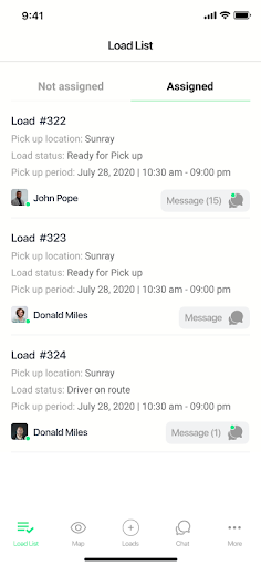 - Streamline communications with in-app messaging to manage your team and the entire load cycle