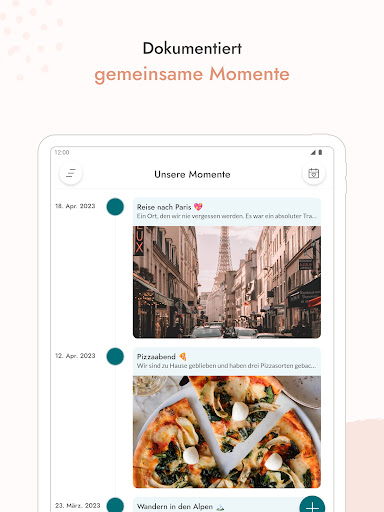Füge erlebte Momente hinzu und ergänze diese mit eigenen Bildern oder Tags. So erstellst du eine schöne Zeitleiste deiner Beziehung, damit die ganz ✨besonderen✨ Anlässe 😉 niemals in Vergessenheit geraten.