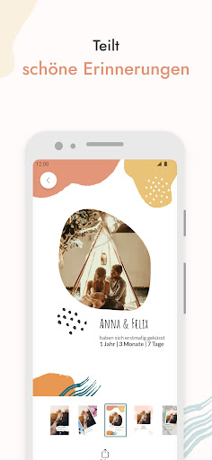 Mit der Teilen-Funktion kannst du Freunde und Familie an deinem Glück teilhaben lassen. Verschicke Beziehungs-Highlights an deine Liebsten oder lade sie in sozialen Netzwerken hoch.