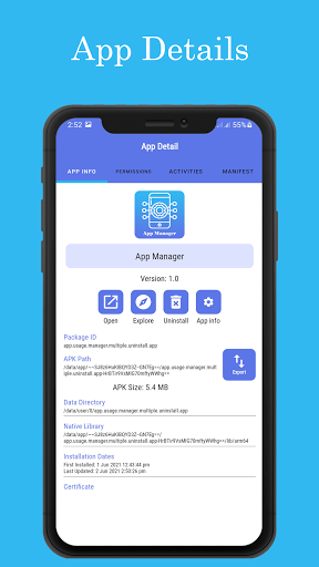 App Manager provide list of apps installed in your device and you can uninstall apps from it. It also display brief information about app like permissions, installed date, etc..