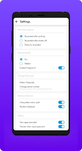 - You can lock your apps and files by fingerprint lock, PIN, or pattern lock
