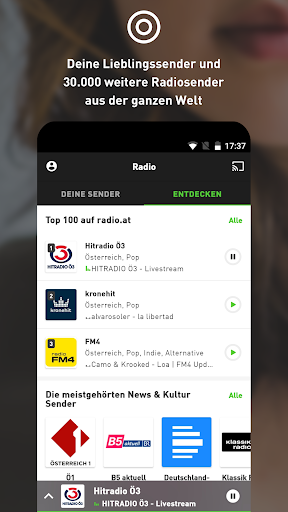Höre deine lokalen und weltweiten Lieblingssender wie Kronehit, Antenne Steiermark, Ö3, Radio Wien, Radio Arabella und entdecke viele weitere Radiosender durch Empfehlungen unserer Redaktion, übersichtlichen Kategorisierungen oder einer intuitiven Suchfunktion.