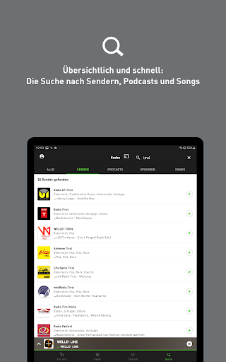 Wir finden die passenden Inhalte, nach denen du suchst. Nutze hierzu unsere übersichtliche Suche nach Sendern, Podcasts, Episoden und Songs. Mit der Episoden-Suche kannst du spannende Gäste und spezielle Themen einzelner Episoden finden. Über die Song-Suche kannst du herausfinden, auf welchen Sendern dein Lieblingssong gerade gespielt wird.