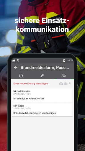 • Einsatz-Messenger. Versenden und Empfangen von Text- und Sprachnachrichten sowie von Videos, Bildern und weiteren Inhalten wie Brandschutzpläne, Datenblätter etc.