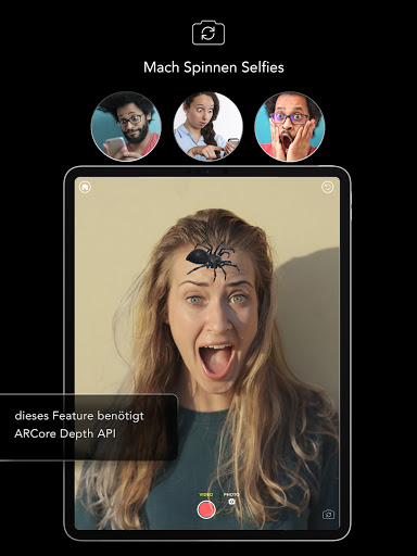 Um Selfies mit Spinnen zu machen, wird ein Gerät mit TrueDepth API benötigt, wie z.B. Samsung Galaxy S8 oder neuer