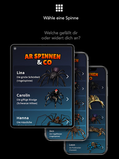 1) Platziere Spinnen & Co auf Oberflächen via AR (Augmented Reality).