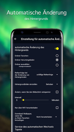 • Automatische Hintergrundänderung mit dem angegebenen Intervall (Live-Wallpaper)