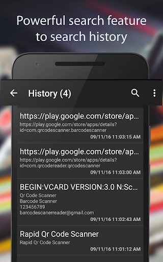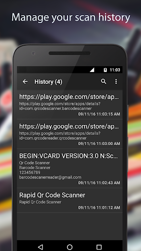 ✓ Wir speichern alle gescannten qr-Codes für Sie auf der Registerkarte Geschichte. Sie können jederzeit jederzeit und überall auf sie zugreifen.