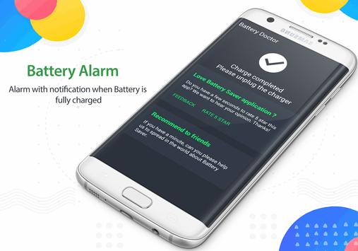 Battery Doctor Monitor all apps that drain power while not in use and remind user about high consumption apps. Indicates how much battery power will be extended if you use