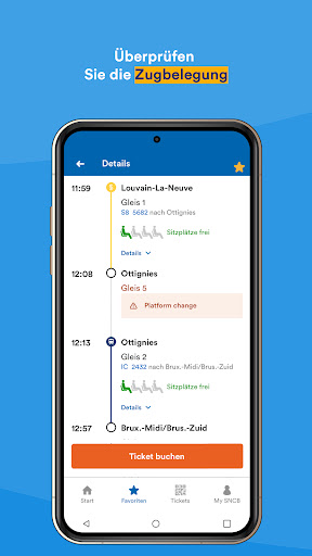 • Erhalten Sie Warnungen bei Änderungen an Ihrem Zug (Gleiswechsel, Verspätung, ...).