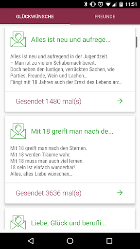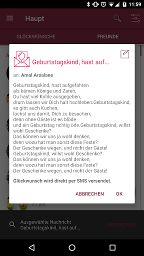 HappySend-Anwendung ermöglicht es Ihnen, nie vergessen, wann und von denen Ihre Freunde einen Geburtstag haben. In der Datenbank gibt es mehr als 2000 Glückwünsche für fast alle Fälle.