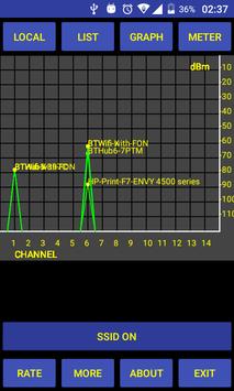 Lists the SSID, WiFi Channel, MAC Address and signal level in dBm.