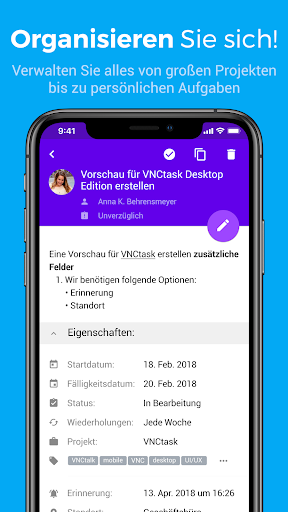 VNCtask ist eine leistungsstarke App für das professionelle To-Do Listen und Aufgabenmanagement.