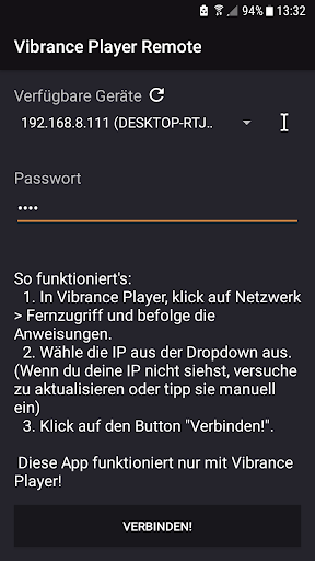 A: Die App agiert als Fernbedienung für das Programm "Vibrance Player" für Windows.