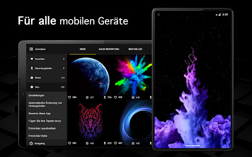 In der Anwendung wird eine automatische Hintergrundänderung Funktion (Live-Wallpaper) implementiert. Sie können die Quelle und das Intervall der Änderung selbst auswählen. Fügen Sie einfach die 4K Hintergründe zu Favoriten hinzu, ankreuzen Sie die entsprechende Position der Einstellungen und erfreuen Sie sich. Ihre allen gefallenden schwarze Bilder werden sich auf dem Desktop und Sperrbildschirm im Wechsel ändern!