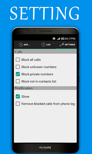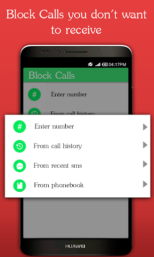- Easy to add a phone number from Contacts List , Call Log into Blacklist.