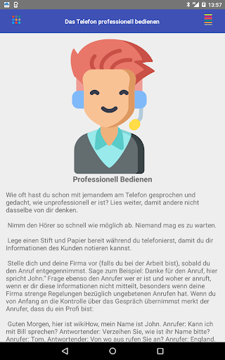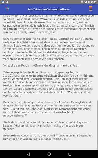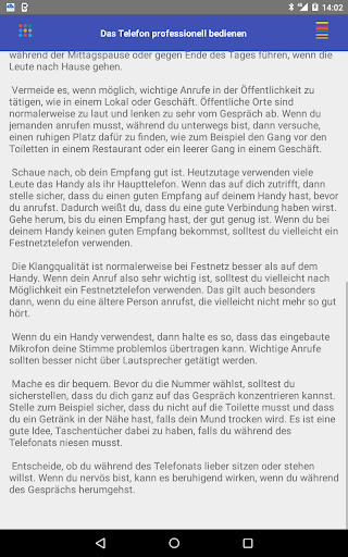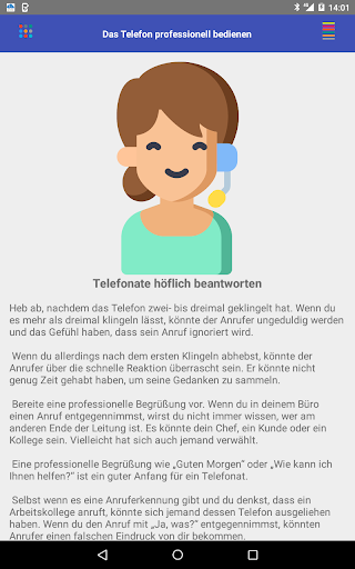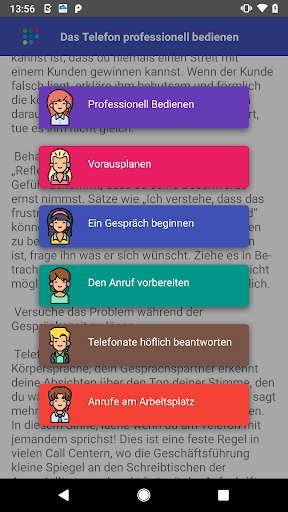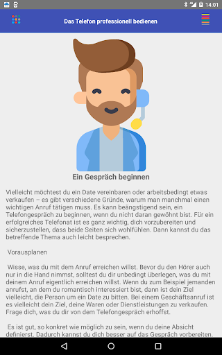 Die Benutzeroberfläche der App ist intuitiv und einfach zu navigieren. Die Ratschläge werden klar und prägnant präsentiert, sodass sie leicht zu verstehen und umzusetzen sind. Sie können überall und jederzeit auf die App zugreifen und schnell darauf zurückgreifen, wenn Sie eine Auffrischung benötigen, wie Sie einen erfolgreichen Geschäftsanruf tätigen.