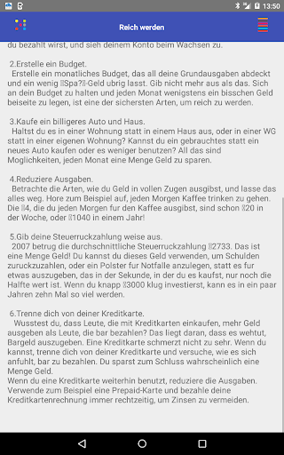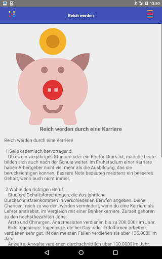 AlsoÖ reich sein. Das will jeder, aber nur wenige wissen, was man dafur tun muss. Reich zu werden, ist eine Kombination aus Gluck, Konnen und Geduld. Man braucht zumindest ein bisschen Gluck; auf diesem Gluck baut man mit gekonnten Entscheidungen auf; und dann trotzt man weiter dem Sturm, wahrend der Reichtum wachst. Wir werden dich nicht anlugen ñ es ist nicht leicht, reich zu werden ñ aber mit ein bisschen Hartnackigkeit und den richtigen Informationen ist es definitiv moglich. So geht es.