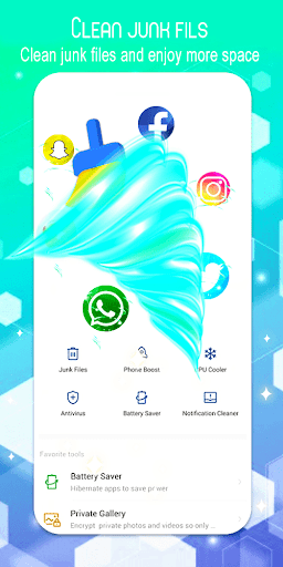 The junk file cleaner can clean up cache and junk files that take up your memory and storage space, which can help boost and optimize your phone's speed and performance.