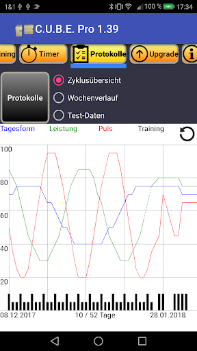 - Optionale Protokolle (Kraft, Beweglichkeit, Physis, Alkoholkonsum, Körper, ...)