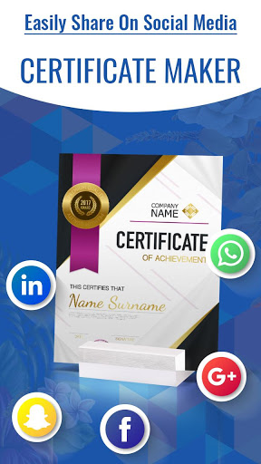 Suchen Sie nach einem Zertifikat für jede Leistung, dann ist dies die beste App für Sie. Hier bieten wir verschiedene Arten von Zertifikat-Template-Designs mit einfachem Customizing-Tool an. Ihr Jungs braucht nicht schwierige Kreativität oder müssen nicht alles entwerfen oder neu erstellen. Sie müssen nur Ihren Namen, Ihren Errungenschaft, ein Institut-Logo und andere Dinge hinzufügen.