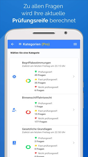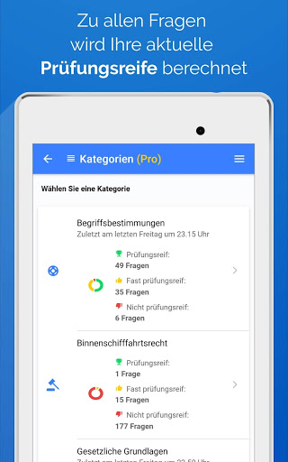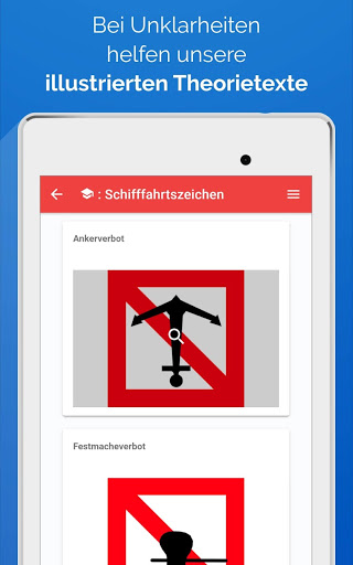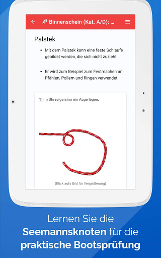 • Nutzer der Pro-Version können weitere Angebote nutzen, darunter unbegrenzte illustrierte Theorietexte zu allen Prüfungsfragen, Knoten-Anleitungen mit Fotos für die praktischen Bootsprüfung, etc.