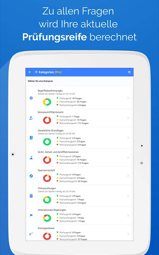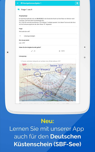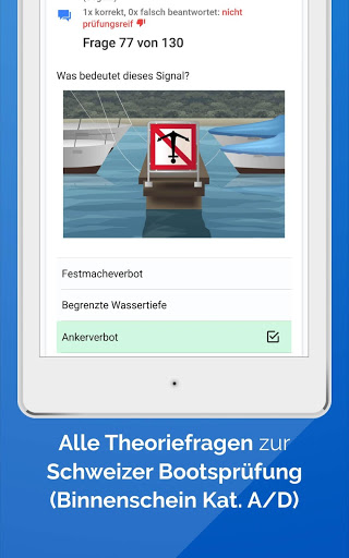 ; Sie brauchen keine Internetverbindung, um unterwegs oder zu Hause für Ihren neuen Bootsschein zu üben.