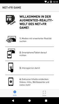 Mit der App „net FR Game“ nehmen Sie an Preisausschreibungen teil, die net FR im Rahmen von Events organisiert. Tauchen Sie in virtuelle Welten ein und entdecken Sie erweiterte Realität und vieles mehr. Richten Sie ganz einfach Ihr Smartphone oder Tablet auf Bilder, um Filme anzusehen, mit virtuellen Objekten zu interagieren, Geschichten zu erleben und an Wettbewerben teilzunehmen. Die net FR Game-App ist kostenlos erhältlich und unverbindlich nutzbar.