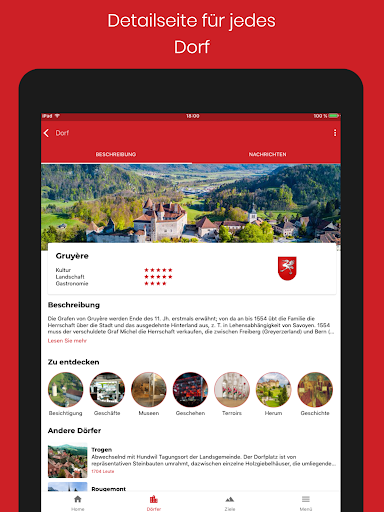 Entdecken Sie auf einzigartiger Weise die schönsten Dörfer der Schweiz. Planen Sie Ihren Aufenthalt in einem unserer schönen Dörfer mit dieser speziell für Sie entwickelten App.