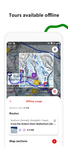 You can download routes with all details and now also any map sections to your smartphone and use them without network reception.